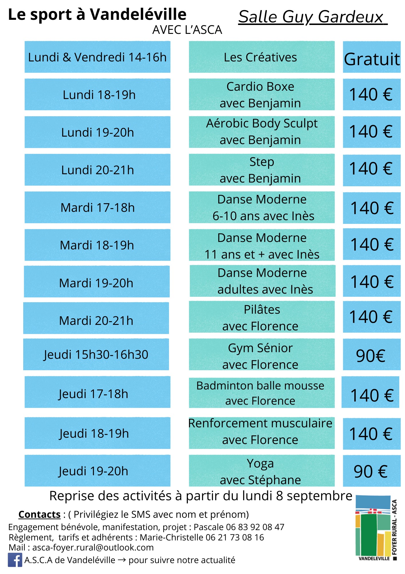 Activités sportives - ASCA Foyer Rural Vandeléville Le sport à Vandeléville avec L'ASCA Plaquette 2022-2023 téléchargeable ici